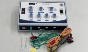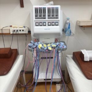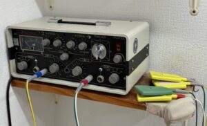 当院では鍼治療時に鍼通電(パルス)治療も行っています。刺した鍼に微弱な低周波電流を流し、深部の筋肉や神経を直接刺激します。鍼は使い捨てなので安心です。鍼治療費は使用する鍼1本につき100円、鍼の通電費として1回(15~20分)につき200円のみ頂いております。